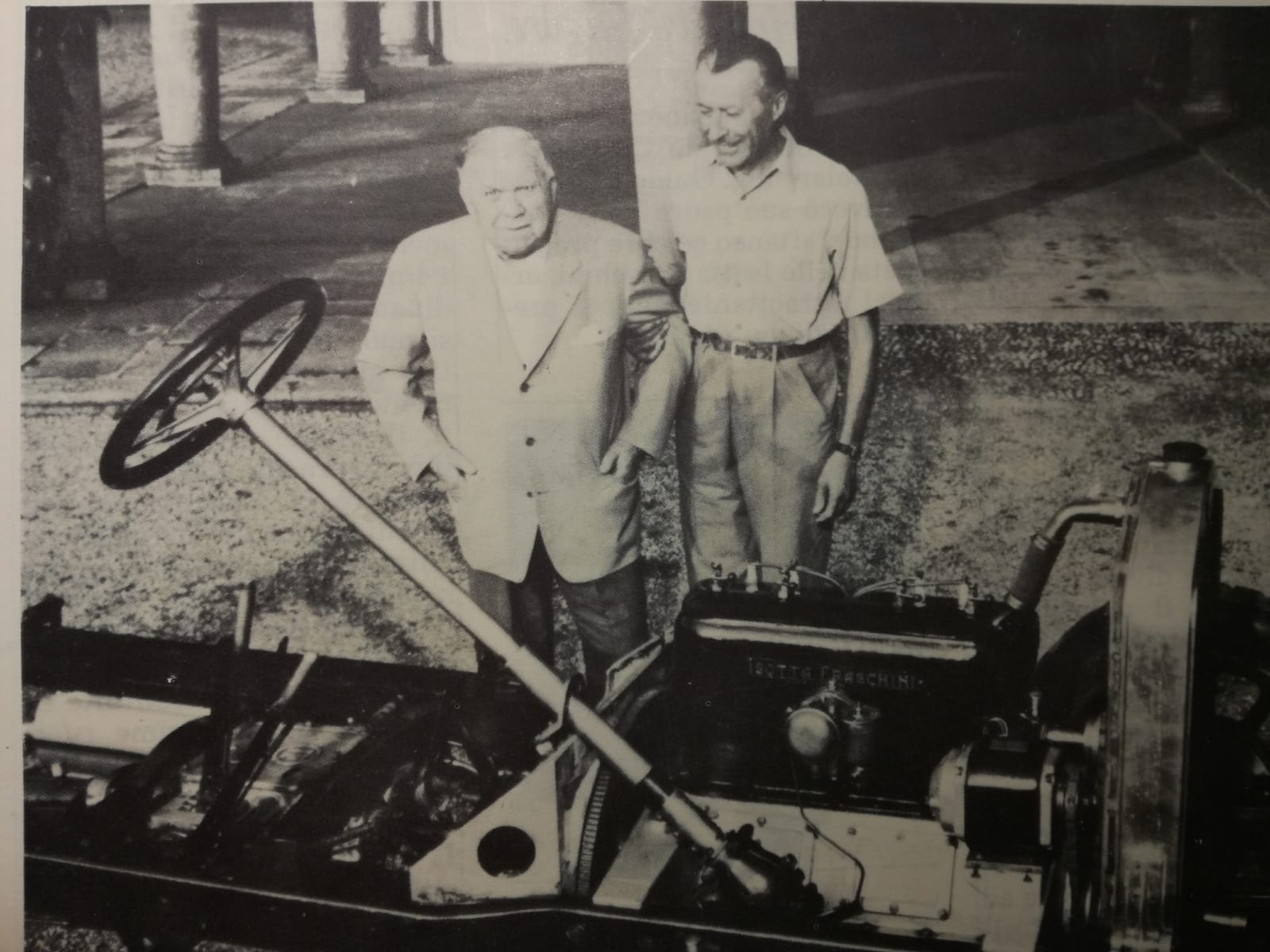 Gioacchino Colombo a hrabě Lurani u právě zrenovovaného šasí Isotty